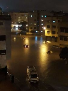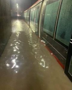 مياه الأمطار، لم تكتفي بإغراق الشوارع والأحياء، بل غمرت السيول إحدى قاطرات ترامواي العاصمة الإقتصادية، في حين تحول المركب الرياضي محمد الخامس، الذي احتضن لقاء الرجاء الرياضي البيضاوي وفريق تنغيت السنغالي، إلى “مسبح” لكرة القدم.