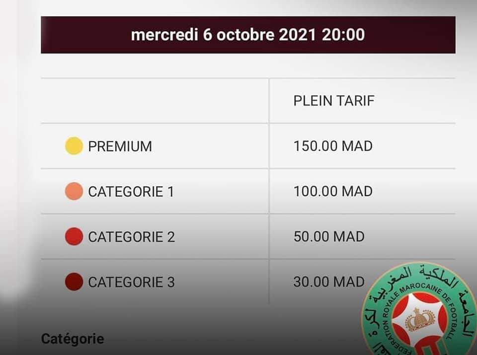 وتتراوح أسعار التذاكر المطروحة بين 30 درهم و150 درهم.