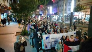 وبدا لافتا رفع صور ولافتات تندد باغتيال قيادات المقاومة الفلسطينية بالخارج، وعلى رأسهم القيادي البارز في “حماس” صالح العاروري، كما اعتبروا الصمت الدولي بعد مرور 90 يوما من العدوان “جريمة عالمية”.